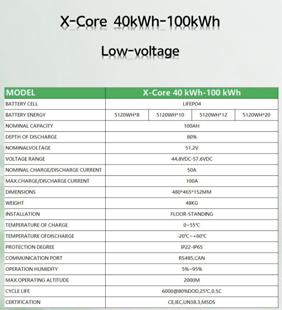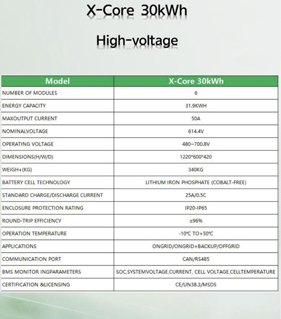 - รุ่น X-Core 30kWh (แรงดันต่ำ)